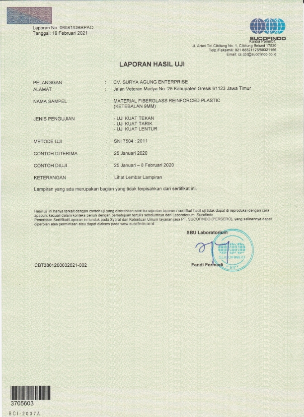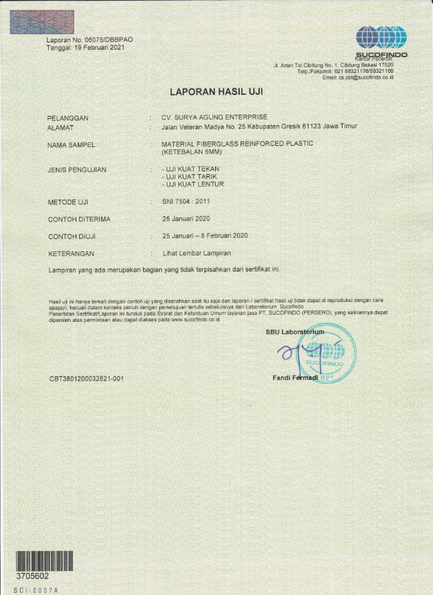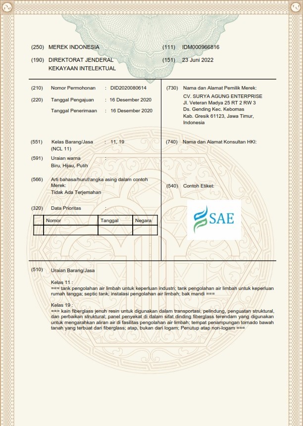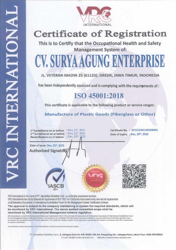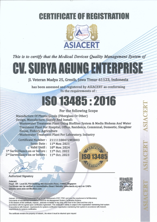 CV Surya Agung Enterprise adalah Perusahaan yang telah berpengalaman lebih dari 30 tahun. Perusahaan kami bergerak di bidang Fiberglass, Instalasi Pengolahan Air Limbah (IPAL), Bio Septictank, Incinerator dan Autoclave. Kami memiliki pengalaman dalam menangani proyek mulai dari skala kecil, menengah, hingga proyek - proyek dengan kapasitas besar. Saat ini kami memiliki puluhan ribu mitra yang tersebar hampir di seluruh Indonesia. Kami memiliki teknisi-teknisi terbaik yang telah berpengalaman dan teruji yang senantiasa terus - menerus berinovasi dalam mengembangkan pelayanan serta kualitas produk.