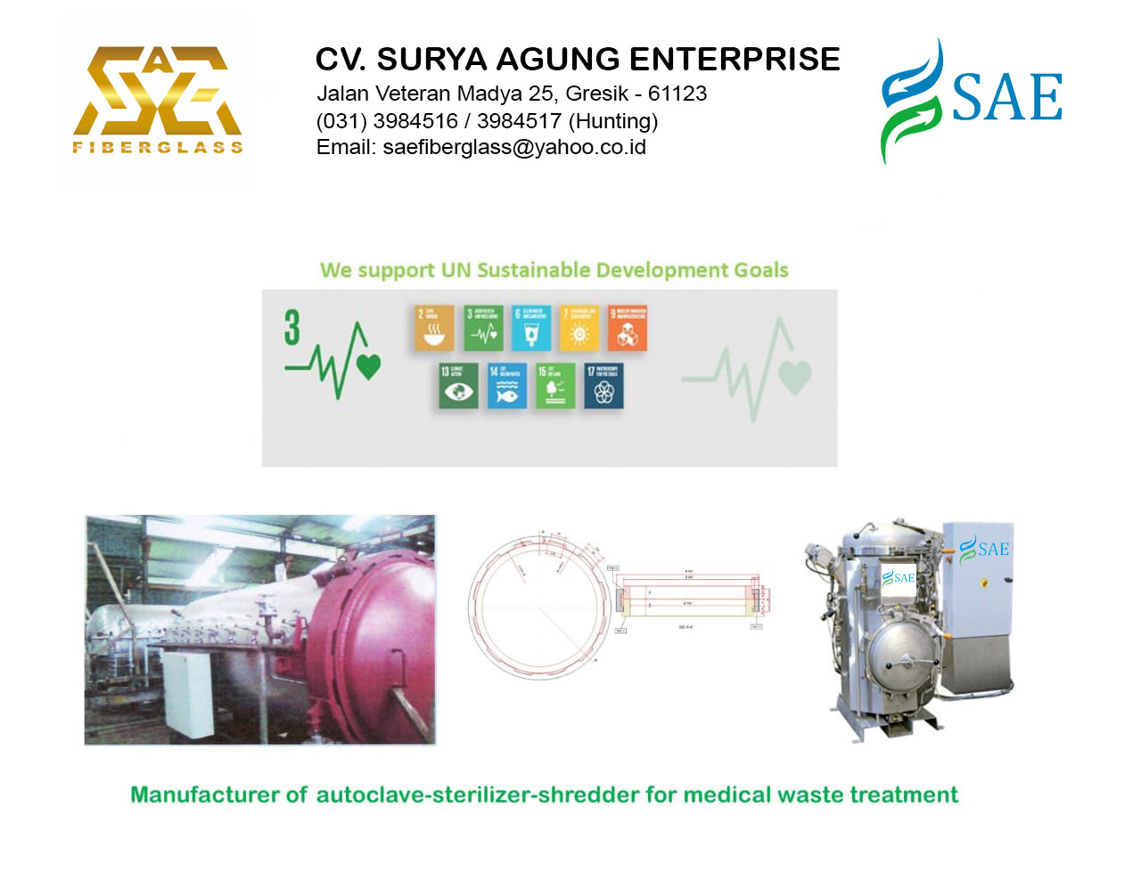 Merupakan teknologi Autoclave dengan sistem steam dengan kapasitas 140 - 400 kg/cycle. Alat ini dioperasikan pada suhu 149°C dan tekanan 52 psi atau 3,54 atm dengan waktu tinggal di dalam autoclave sekurang-kurangnya 30 (tiga puluh) menit.